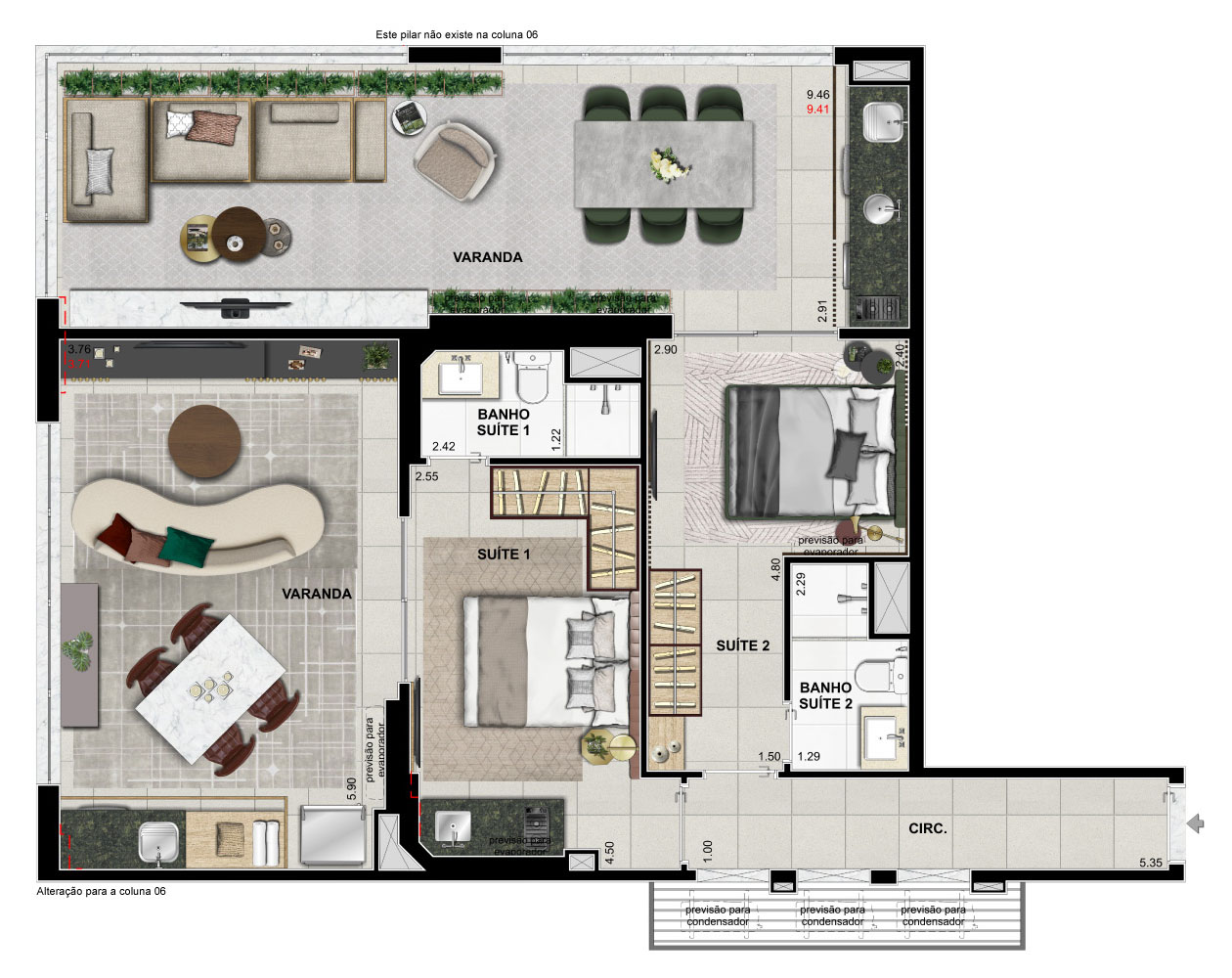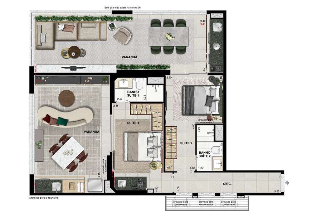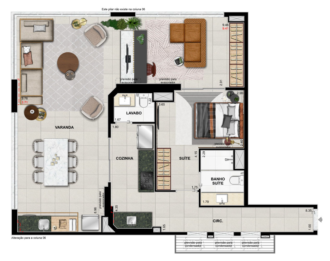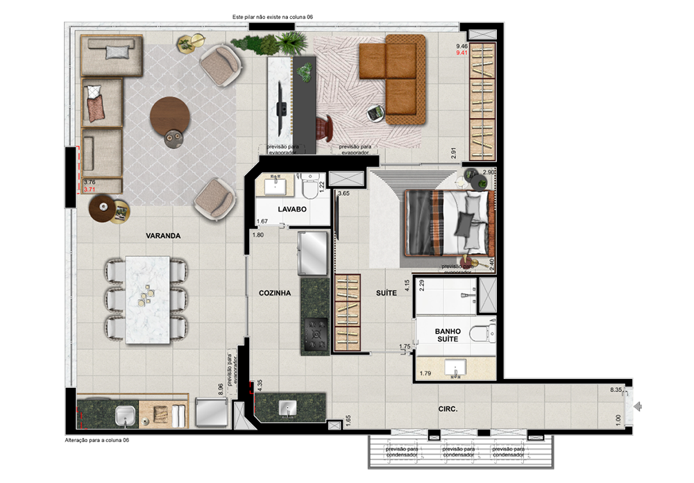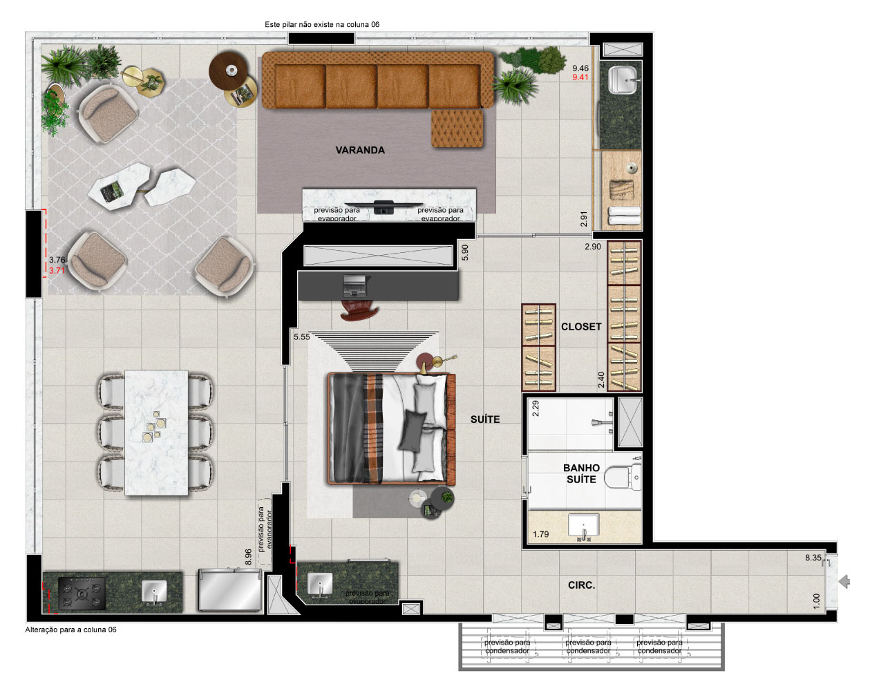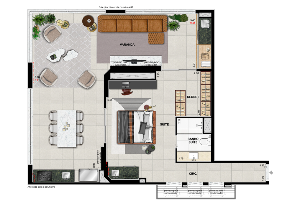 Suíte e varanda ampliadas