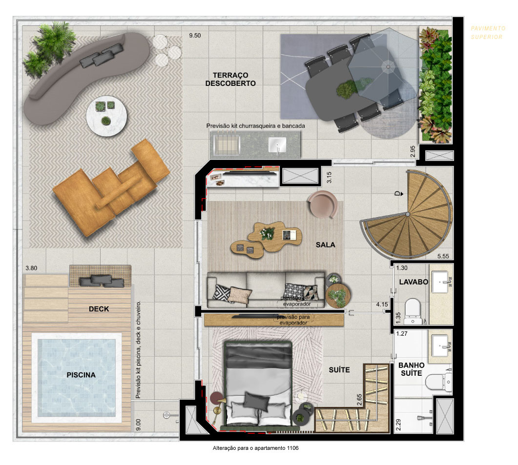 As opções de plantas Flex On apresentadas estão sujeitas a cobrança por parte da incorporadora.